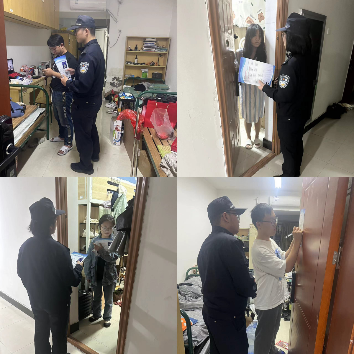 来自白杨派出所的多名学警走进学生公寓,通过反诈案例讲解,分发反诈告知书、协助下载“国家反诈中心”app等方式,就如何防范电信网络诈骗进行了广泛的宣传。